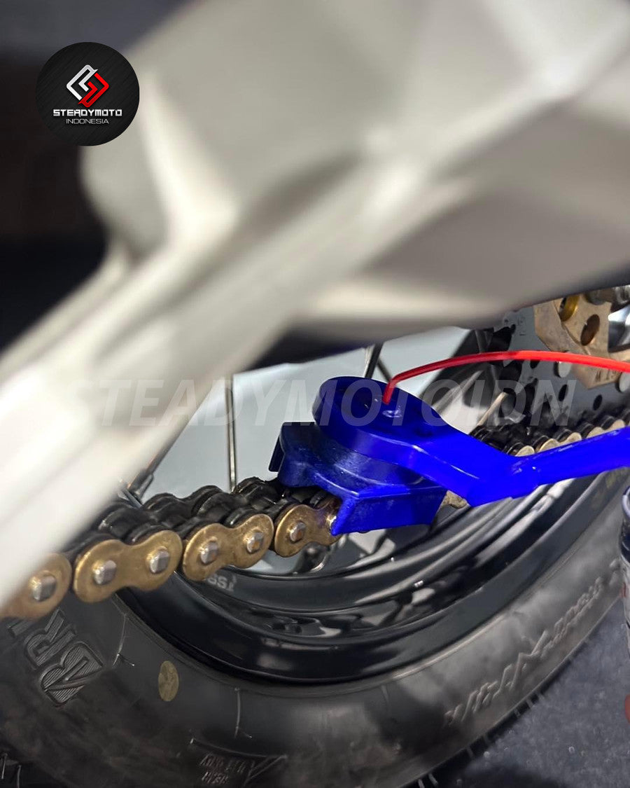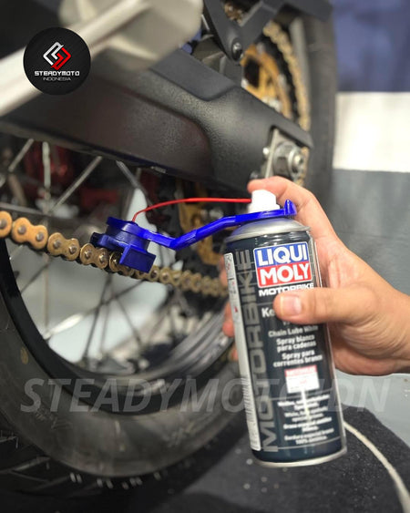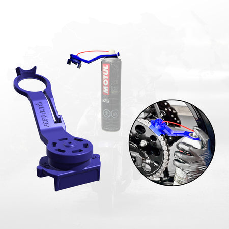 Transform your motorcycle maintenance routine with our motorcycle chain tool. Attaches to any chain lube can to deliver a precise, even application of lubricant to both sides of the chain. Minimise overspray and keep your swing arm, rear tire, and brakes free from chain lube.