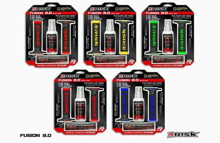If you ride a dirt bike, then you know what it is like to have a grip that slips. Despite all your efforts to glue and safety wire the grip in place, it usually slips. Just the process of glueing and wiring grips can be a hassle as well. The wire often breaks during installation, and once installed, there is often a sharp point that wreaks havoc on your hands. Additionally, the glueing process is a mess and it is impossible to get consistent coverage between your grip and the bar. Risk Racing created a simple and effective solution grip bonding system called Fusion.
