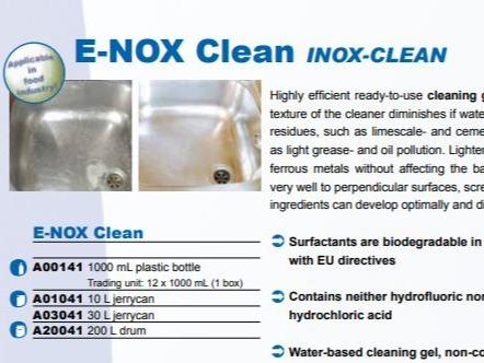 The gel can also be used in the food industry. It can be removed without residues after rinsing with water. According to the German Food, Consumer Goods and Feed Code (LFGB), the cleaner may be used in food-processing companies. It helps fulfil the high demands of the VOC Solvents Directive (DE: 31. BImSchV, AT: VOC-Anlagen-Verordnung – VAV): the limit values do not apply to cleaners with a solvent content of less than 20%.