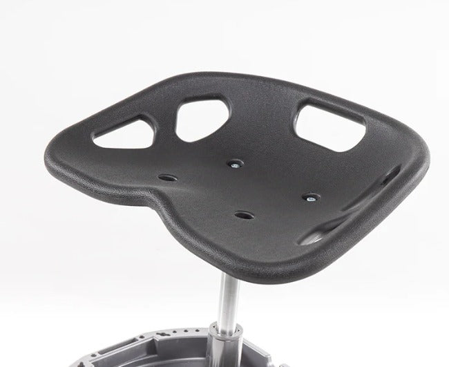 - Workshop chair with tray and adjustable height and rotating garage seat.
