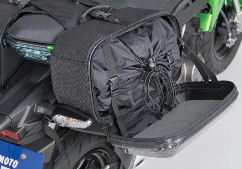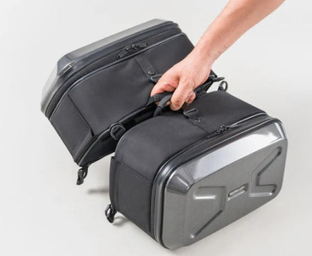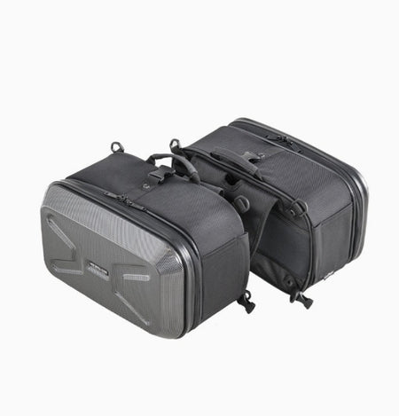 A compact hard-shell side saddle bag perfect for smaller motorcycles, adding about one overnight’s worth of storage without overwhelming your bike’s lines. Features a carbon-style finish for a sharp touring look.