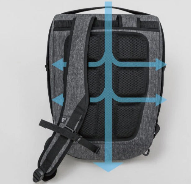 Ventilated Back Padding: Mesh-lined cushioning promotes airflow to reduce heat buildup when worn as a backpack .