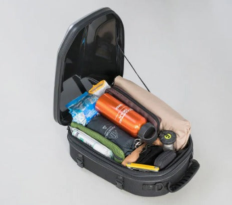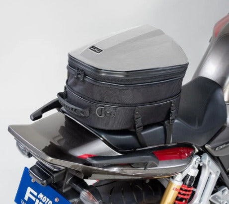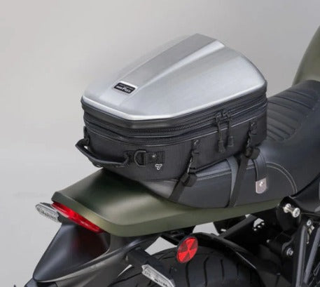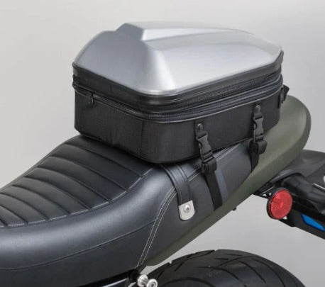 A robust hard‑shell motorcycle seat bag crafted for short-distance touring, offering adjustable volume to adapt to your riding needs