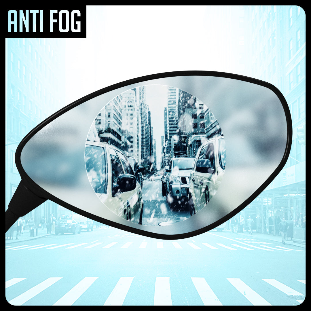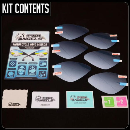 Speedo Angels Anti-Fog and Water-Repellent wing mirror film kits are essential items for every rider to help improve the visibility of the wing-mirrors in cold and poor weather. Our wing mirror films are covered with a special Anti-Fog and Water-Repellent Nano coating. This keeps mist and fog away and water simply runs off the film leaving you with a clear view of what is behind you.