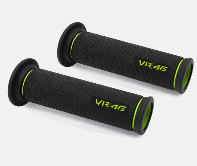 VR46 Grips are racing-style handlebar grips designed for both track and street use. Made from durable rubber, they provide excellent ergonomics and superior grip strength.